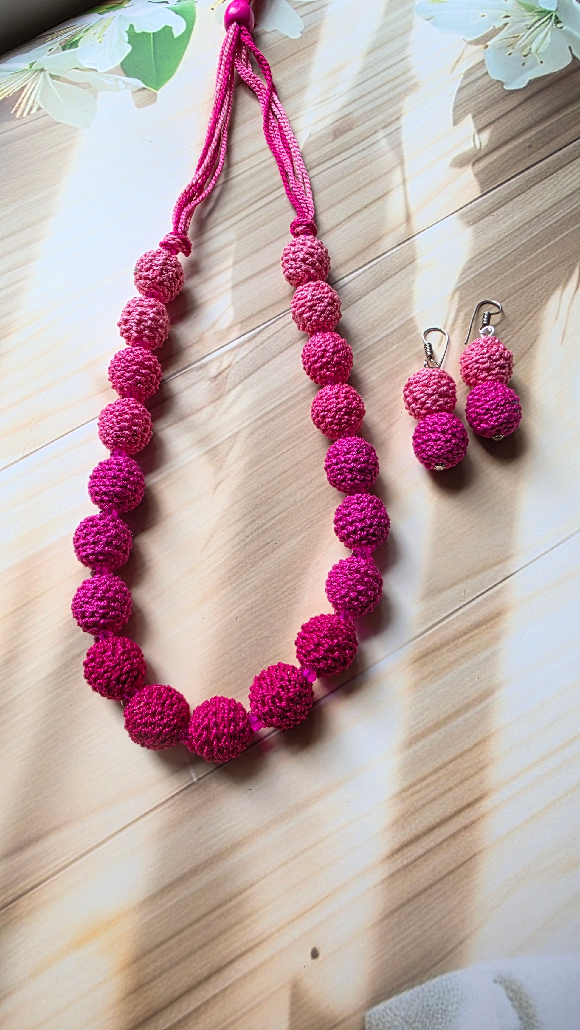This handcrafted neckpiece featuring textured round beads in a smooth colour-fade design. Light-weight, elegant and paired with matching earrings. Available in 5 beautiful colours.