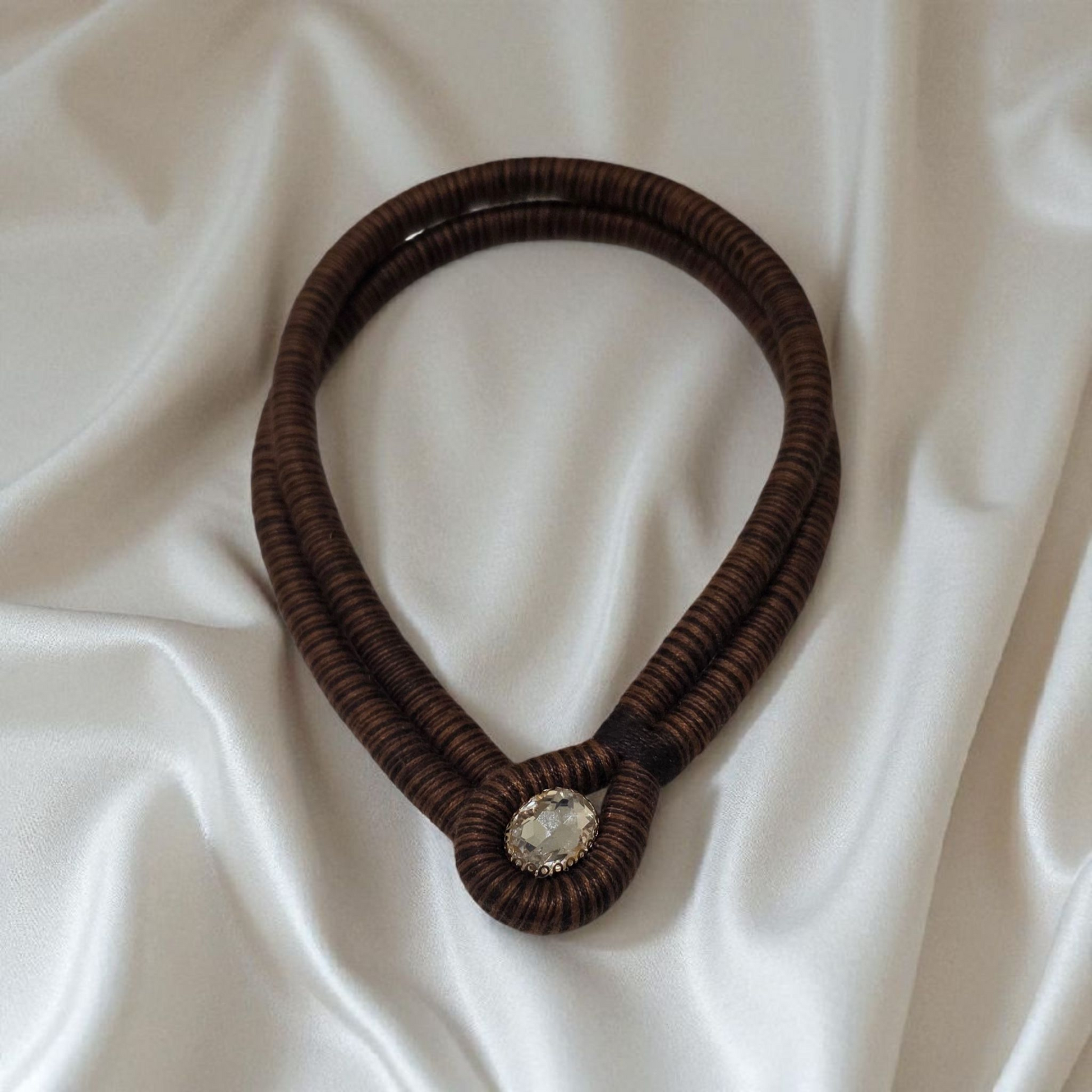 A classic jute neckpiece with a single crystal stud at the centre. Simple, elegant, and light-weight for everyday style.